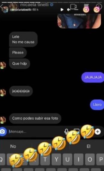 Por supuesto, a Mica no le gustó nada quedar expuesta públicamente y se lo hizo saber a través de un DM que Lelé no dudó en subir, muerta de risa, para que todos pudieran leer el intercambio.