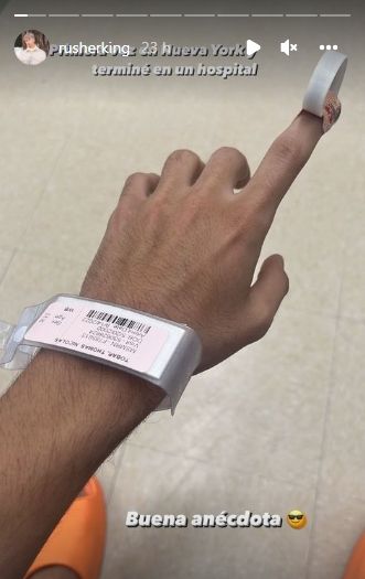 "Primera vez en Nueva York y terminé en un hospital. Buena anécdota", escribió en sus redes sociales Rusherking. En la imagen que compartió se ve su dedo índice lastimado. Seguramente sufrió algún corte que necesitó sutura.