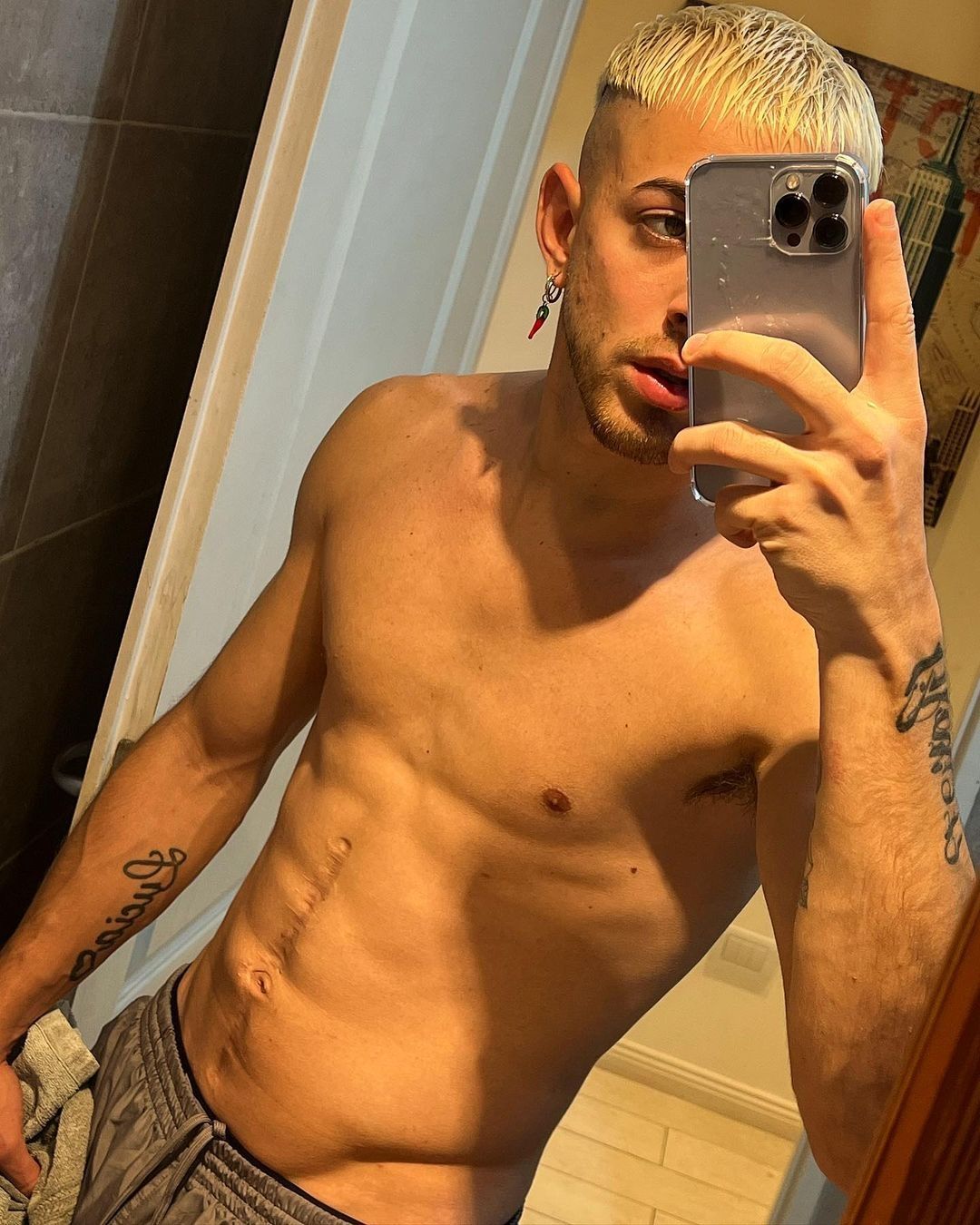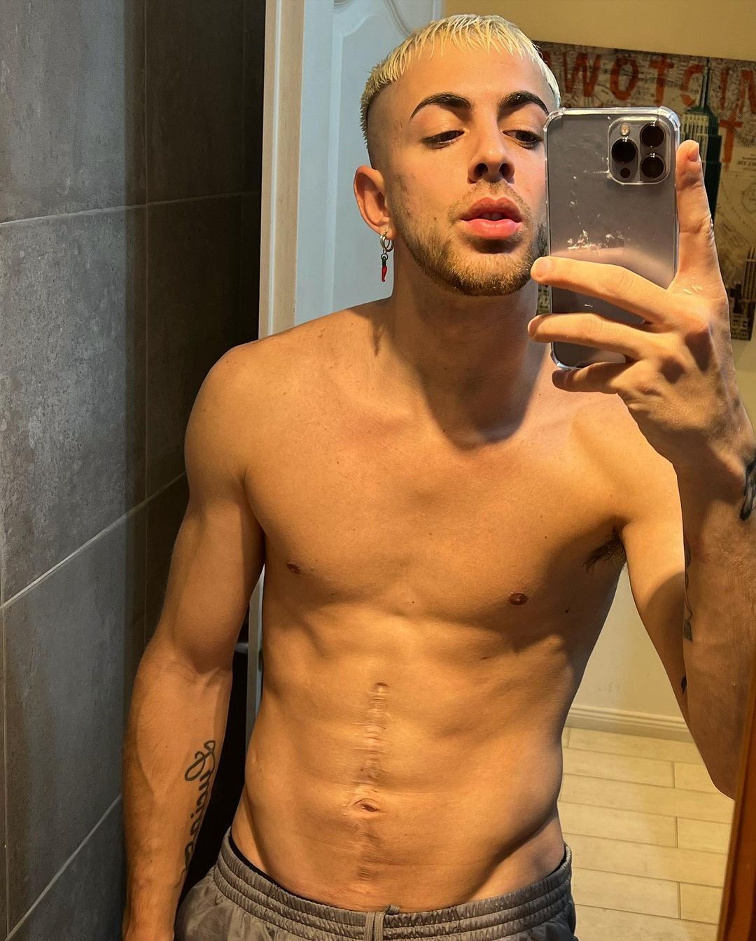 "La cicatriz es porque choqué con la moto cuando tenía 17, me sacaron el bazo y casi muero., pero después de unos años, ¡estoy más fuerte que nunca!", comenzó relatando.