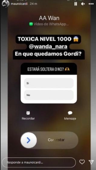 Minutos más tarde, la empresaria decidió hacerle una videollamada. "Tóxica nivel 1000. ¿En qué quedamos, gordi?". Finalmente, compartió una encuesta con sus seguidores: "¿Estará soltera o no?".