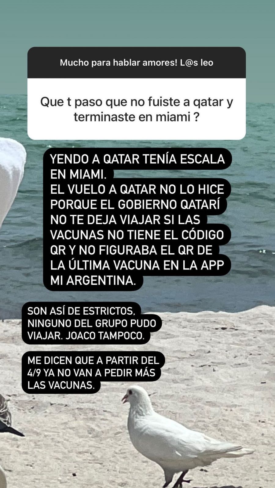 Y continuó: "No tenía la documentanción completa. Falló el código QR. Quedó varada en Miami y llamó al hotel Lennox, que no da canjes. Wanda está ahí porque es una situación particular. Ni Pampita se hospeda ahí. Ella llamó y les dijo 'mirá yo tenía un viaje a Qatar, el vuelo hacia escala en Miami, pero quedé varada'".