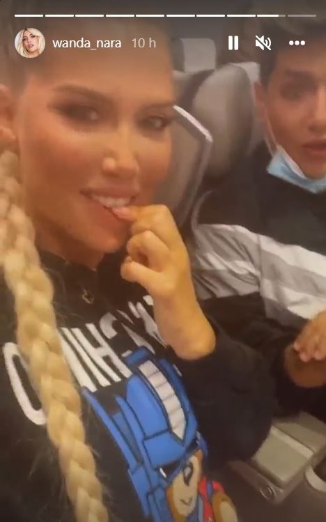 "Miren esta historia que subió Wanda Nara hace 40 minutos", dijo la periodista, mientras se veía a la rubia desde el aeropuerto, pronta a subirse al avión con su amigo Kennys Palacios.