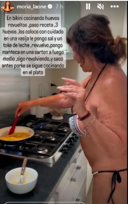 Luego, ella misma subió un posteo cocinando en bikini.