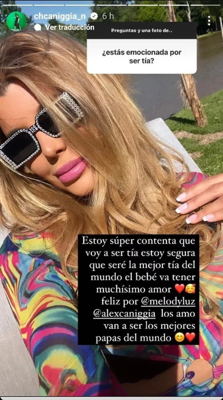 “Estoy súper contenta de que voy a ser tía. Estoy segura de que seré la mejor tía del mundo. El bebé va a tener muchísimo amor. Feliz por Melody y Alex, van a ser los mejores papás del mundo. Los amo”, expresó Charlotte, sumando emojis de corazones.