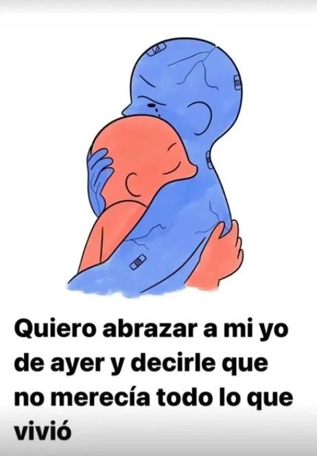 Acto seguido, sumó compartió una imagen de dos personas abrazadas junto al siguiente texto: "Quiero abrazar a mi yo de ayer y decirle que no merecía todo lo que vivió".