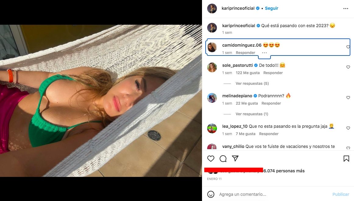 Karina La Princesita sigue generando preocupación entre sus seguidores. Hace algunas semanas atrás había compartido una foto donde se la podía ver muy triste acostada en una hamaca paraguaya. "Qué está pasando con este 2023?", se preguntaba la cantante.