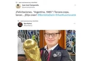 Desde su cuenta de Twitter, Juan José Campanella compartió su entusiasmo por el lugar que se hizo en los premios Oscar Argentina, 1985, y en su posteo sumó la frase que fue emblema de todo el país durante el Mundial de Qatar. “¡Felicitaciones, “Argentina, 1985?! Tercera copa, tercer… ¡Elijo creer!”, escribió el realizador.