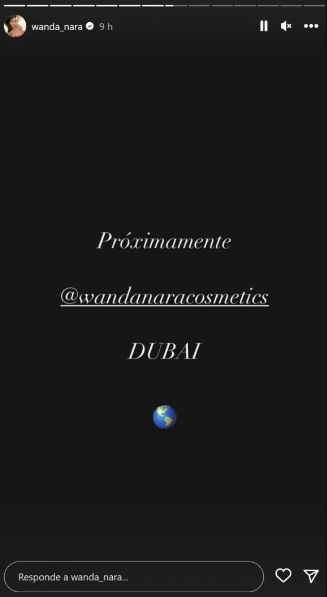 A través de sus Historias de Instagram, la ex de Mauro Icardi les comunicó a sus fanáticos lo que se encuentra planificando a nivel laboral. "Muy pronto, Wanda Cosmetics en Dubai", expresó Wanda Nara.