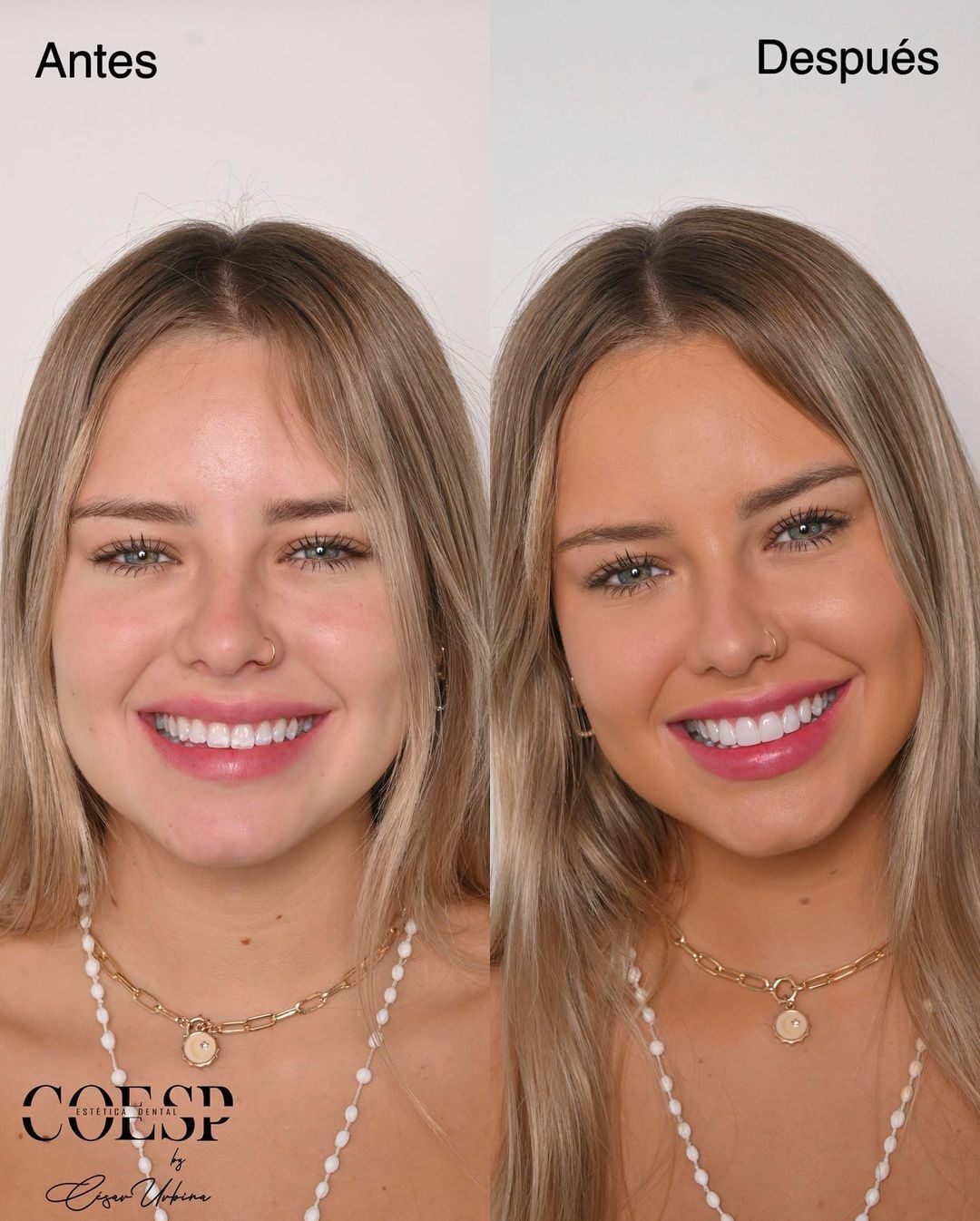 En tanto, el profesional subió en su propio perfil una comparación del antes y el después del procedimiento, en el cual confesó nuevas inseguridades de Constanza: “Pequeños cambios que alegran vidas. Nuestra paciente ya tenía una sonrisa hermosa pero a ella le generaba un poco de inseguridad unas manchas de hipoplasia que tenía en el esmalte”.