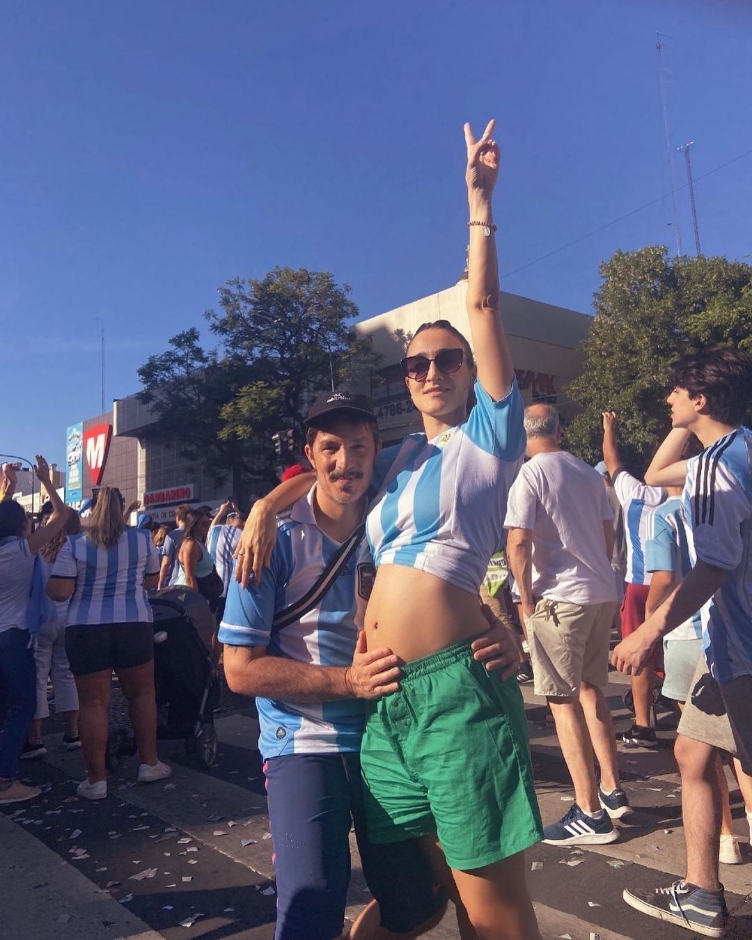En la vía pública, y rodeados de miles de argentinos, el cantante y la bailarina aprovecharon para sacarse una particular foto que compartieron horas más tarde. En ella se lo puede ver a él acariciando la prominente panza de su novia. Como si no fuese suficiente, Horvilleur escribió “Pancita Argentina”, confirmando así que junto a su pareja se encuentran esperando un hijo. En el caso del cantante de Illya Kuryaki and the Valderramas se trata del segundo, ya que en 2004 tuvo a André junto a Celeste Cid.