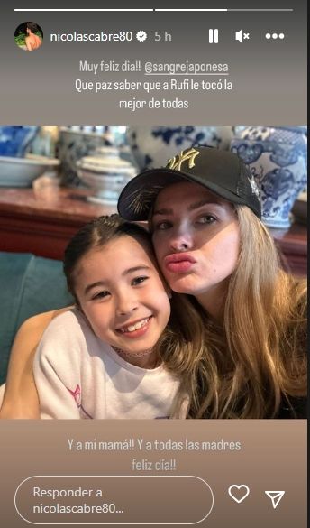 Y este Día de la Madre no fue la excepción ya que Nicolás Cabré decidió demostrar, una vez más, su admiración por la mamá de la pequeña: "Muy feliz día China Suárez”, comenzó y continuó: “Que paz saber que Rufi le tocó la mejor de todas”. Además, aprovechó para saludar a su progenitora: "Y a mi mamá y a todas las madres feliz día”.