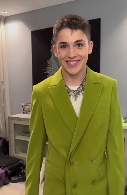 Para esta noche inolvidable, el joven usó un espectacular traje de color verde combinado con unas zapatillas urbanas para su llegada al salón. “Voy a tener tres cambios de traje, yo espero que ella tenga uno”, adelantó el joven.