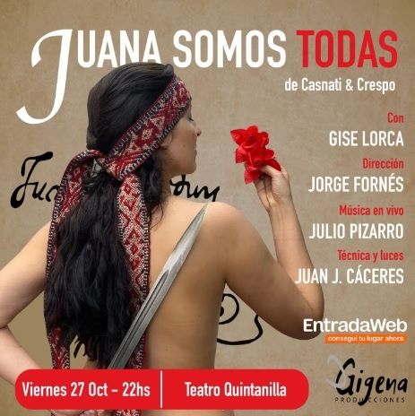 Este viernes 27 de octubre, en el Teatro Julio Quintanilla, se presenta la obra Juana somos todas, que cuenta el supuesto romance entre Juana Azurduy y Manuel Belgrano. Será desde las 22 hs. y las entradas pueden adquirirse a través de Entradaweb.com.