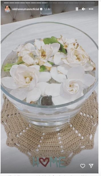 De ese modo, Nikita dejó en claro que le encanta ese ambiente de su propiedad y permitió que sus seguidores detectaran la calidez de los colores de la mesa ratona, de los colores de la pared, de la ubicación de su televisor gigante y del objeto que utiliza para ornamentar la mesita.