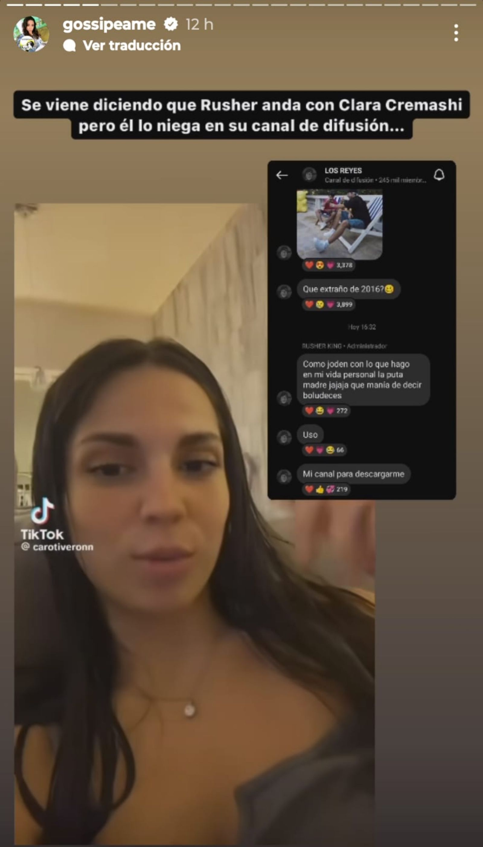 Asimismo, Gossipeame compartió el mensaje de un usuario de la red social donde le explicó la razón por la cual Rusherking negaría que estuvo junto a la tiktoker: "Lo niega porque Clara era amiga de Mar Lucas".