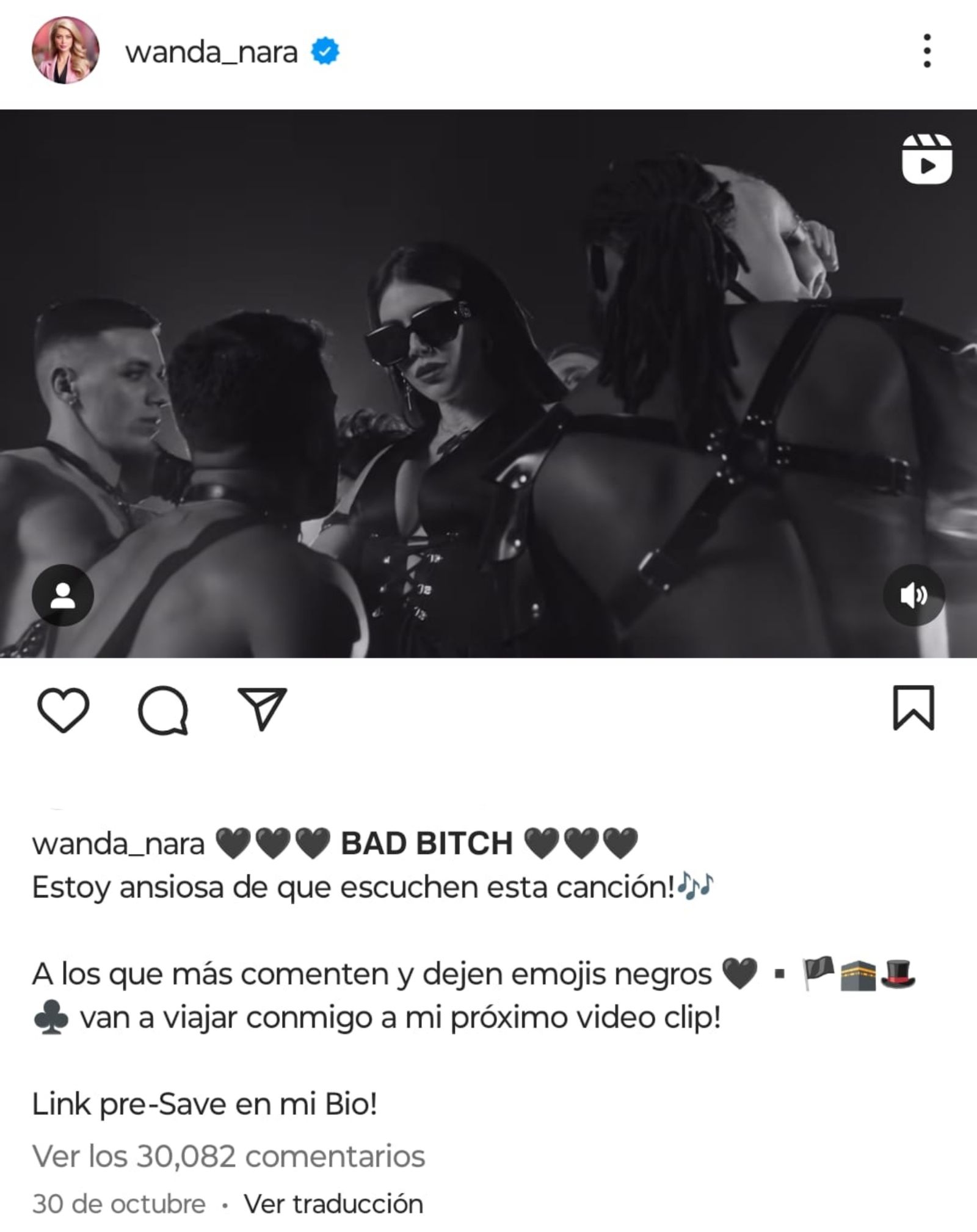 El tema se titulará Bad Bitch y se estrenará este miércoles 8 de noviembre a las 18 horas. En el reciente video que publicó Wanda Nara se puede escuchar una parte de la letra de su próximo tema musical: "Siempre consigo todo lo que quiero. Él me gustó, parece sincero".