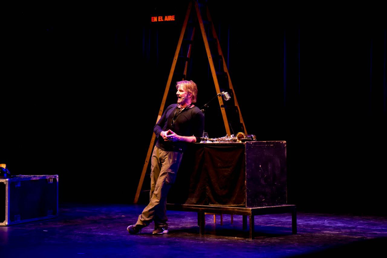 En este espectáculos Facundo Arana despliega todo su talento tanto actoral como musical ya que en varias situaciones ilustra el momento al sonar de su saxo. La obra narra la historia de Marcos, un particular locutor radial que transmite su programa desde el escenario de un teatro de pueblo perdido en el interior de nuestro país.