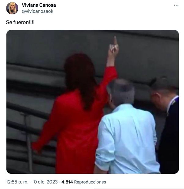 Como era de esperarse, las redes sociales se hicieron eco de lo sucedido. La que no dejó pasar el gesto de Cristina fue Viviana Canosa. La periodista se volcó a su cuenta de Twitter y expresó: "Se fueron!!!!", adjuntando una captura de pantalla de la transmisión televisiva.