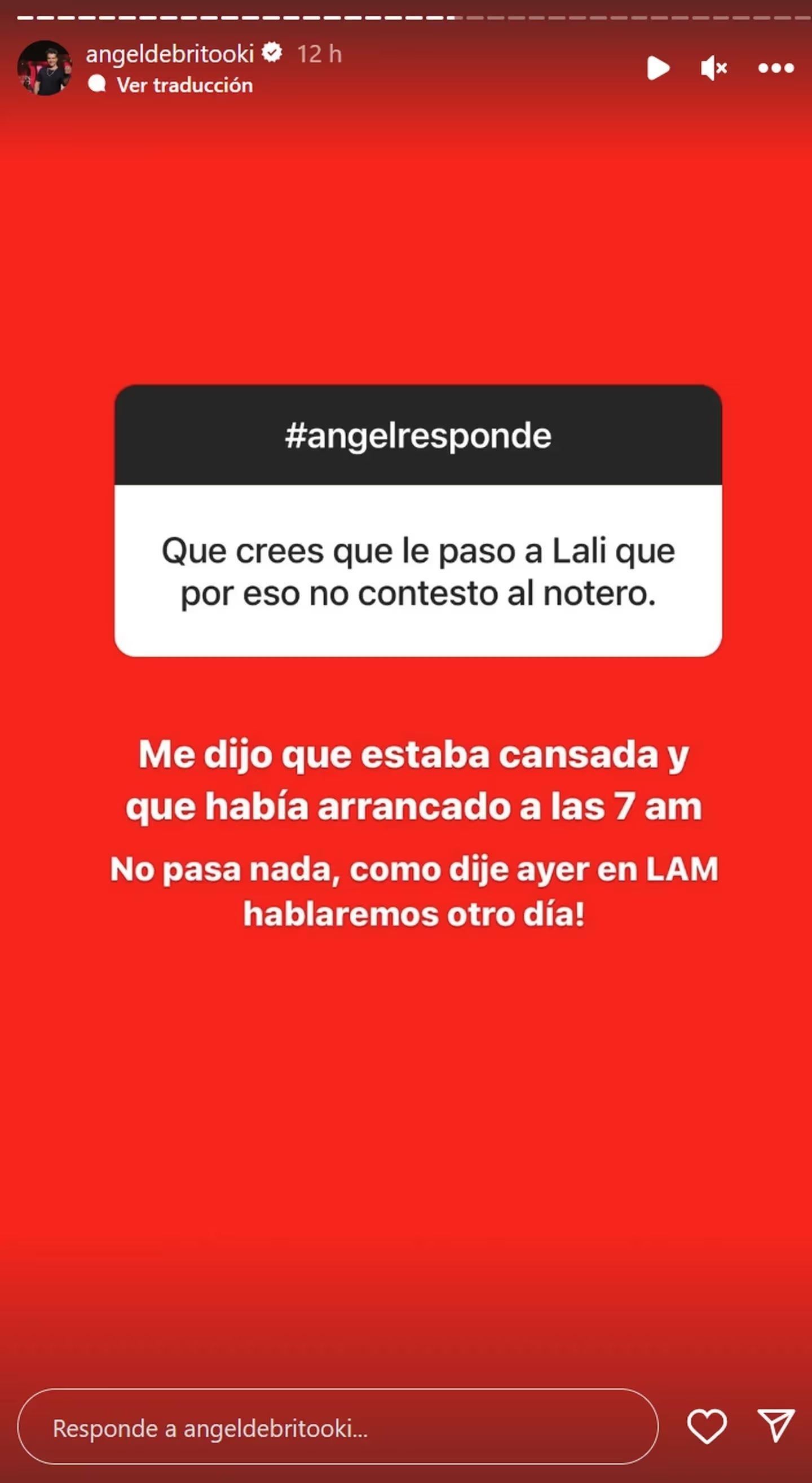 En este contexto, Ángel de Brito se puso en contacto con ella y reveló picante su charla privada con la cantante. Para evitar malos entendidos, el conductor contó que está todo bien entre ambos, a pesar de que ella ignoró a su notero.