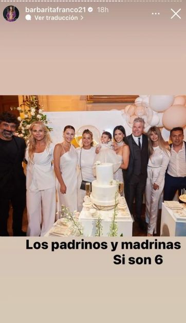 “Los padrinos y madrinas. Sí, ¡son 6!”, explicó Barby junto a la emotiva publicación. Una de las figuras elegidas es Pampita, quién forjó una gran amistad con la modelo y existe un inmenso cariño entre ellas. De esta selección puntillosa, también forman parte Delfina y María, las hijas mayores de Fernando.