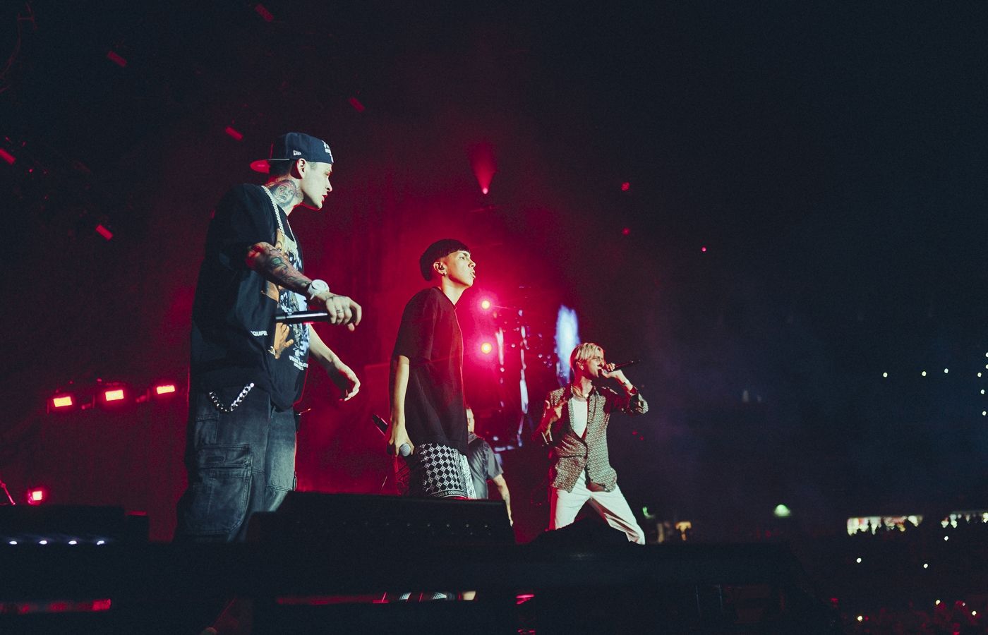 En la previa y para ir calentando motores subían al escenario Chino CNO, acompañado por Klan, y Acru. Los tres son referentes dentro del mundo del hip hop y del trap y también tuvieron sus inicios en las batallas de gallos, la escuela de Duki, como así también de Trueno y Wos, otros referentes de la movida urbana.