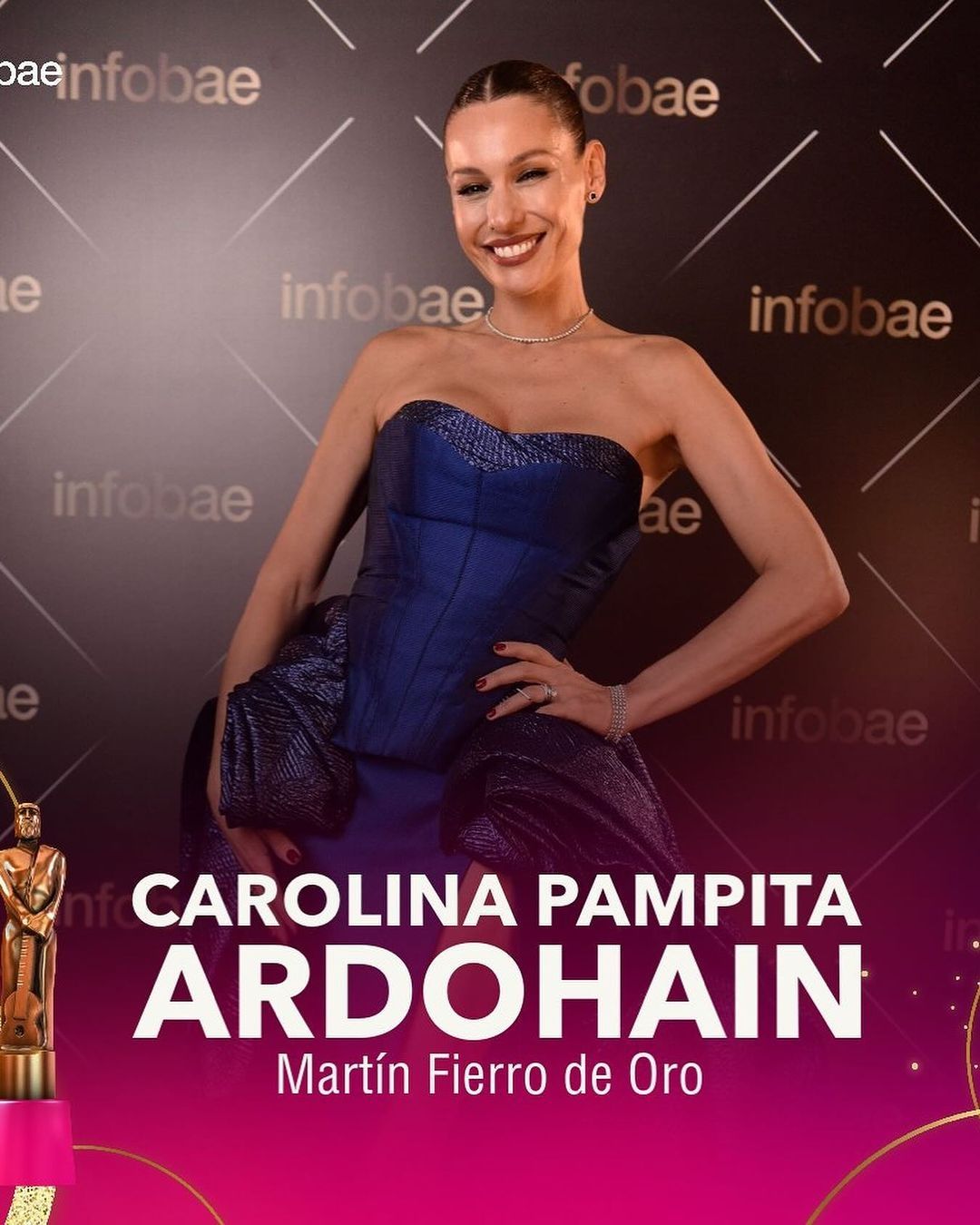 La velada concluyó antes de la medianoche con la entrega de un Martín Fierro de Oro, categoría para la que compitieron todos los galardonados, y que fue para la modelo y conductora Carolina Pampita Ardohain.