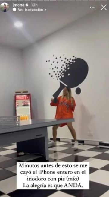 "Minutos antes de esto, se me cayó el celular entero en el inodoro con pis (mío). La alegría es que igualmente anda", manifestó la cantante, a través de su cuenta de Instagram. Con la autenticidad que la caracteriza, Jimena se tomó con humor el desesperante momento. Para aclarar la situación, la actriz expresó que su aparato aún funciona y se mostró agradecida porque no haya sufrido daños.