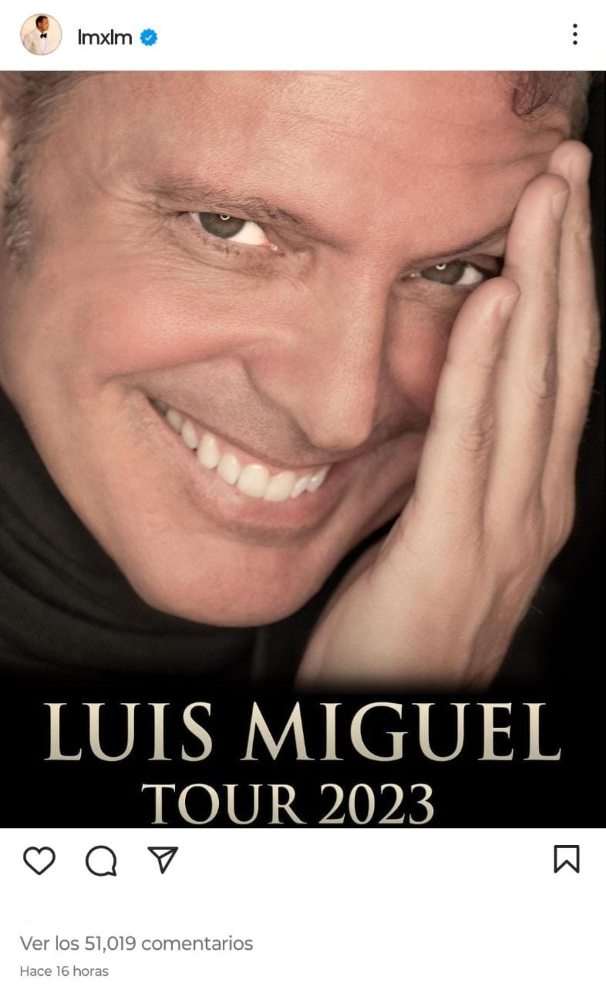 El cantante mexicano lo comunicó con una imagen en Instagram, donde se puede ver al músico sonriendo y con la leyenda ¨Luis Miguel Tour 2023¨. El artista no subía nada a su perfil desde septiembre del año pasado.