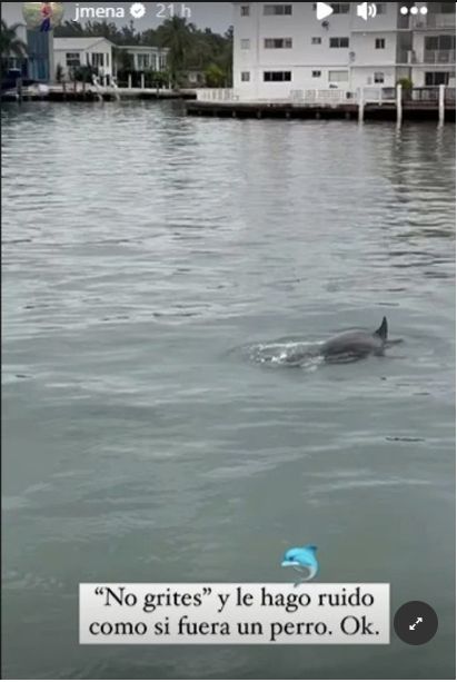 Y finalmente llegó el momento más movilizante de toda esa travesía por las aguas, que se vincula con la singularidad del hábitat de un animal majestuoso y cariñoso como el delfín. “La emoción que me da ver delfines libres en el mar”, puso en una instantánea.