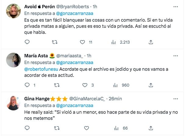 El conductor de La noche de los ex (Telefe), programa satélite de Gran Hermano 2022(Telefe), sorprendió con sus declaraciones radiales en relación al caso. A pesar de que la detención de Corazza se da en el marco de una causa judicial, Funes Ugarte opinó: "Es un tema que pertenece a su vida privada".