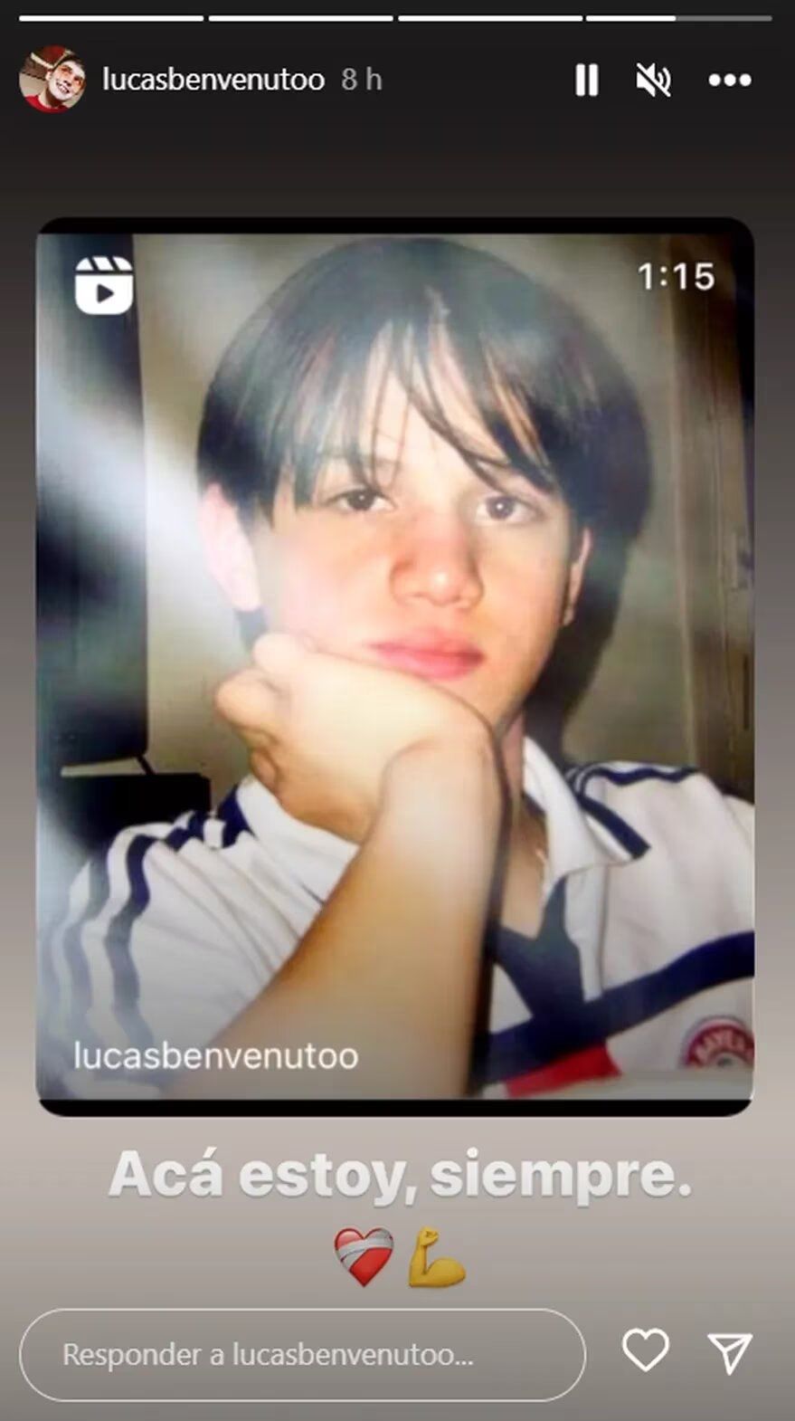 Además, Lucas Benvenuto sumó también en sus historias de Instagram el reel de la carta que se dedicó a sí mismo bajo el título: "Carta a ese niño que fui algún día". En la publicación en cuestión escribió: "Acá estoy, siempre", junto al emoji de un corazón partido con una venda.