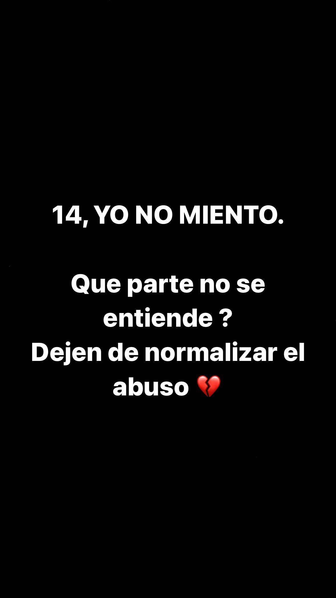 Por su parte, desde la red Lucas Benvenuto se encargo de confirmar una vez más: “14. Yo no miento. ¿Qué parte no se entiende? Dejen de normalizar el abuso”. El joven acompañó sus palabras con el emoji de un corazón herido, y dejó en claro que piensa seguir sosteniendo la afirmación que ha sostenido tanto en su denuncia judicial, como en la formulada a través de los medios.
