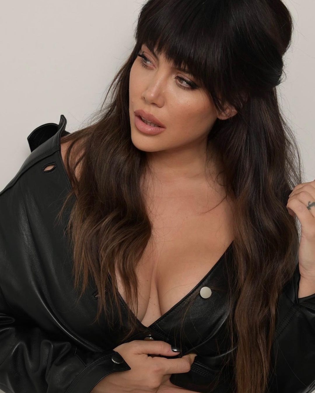 Para dar a conocer este reciente trabajo que se realizó en su pelo, la mediática decidió llevar un outfit muy canchero, vistiéndose con una chaqueta de simil cuero totalmente negra.