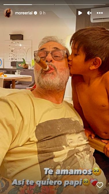 En este contexto, Morena Rial reaccionó en sus redes sociales: "Te amamos. Así te quiero papi", fue el texto que acompañó a una imagen de Rial fumando un habano junto a su nieto. Esta fue la primera reacción de la hija del conductor luego de que se diera a conocer el delicado estado de salud de su padre.