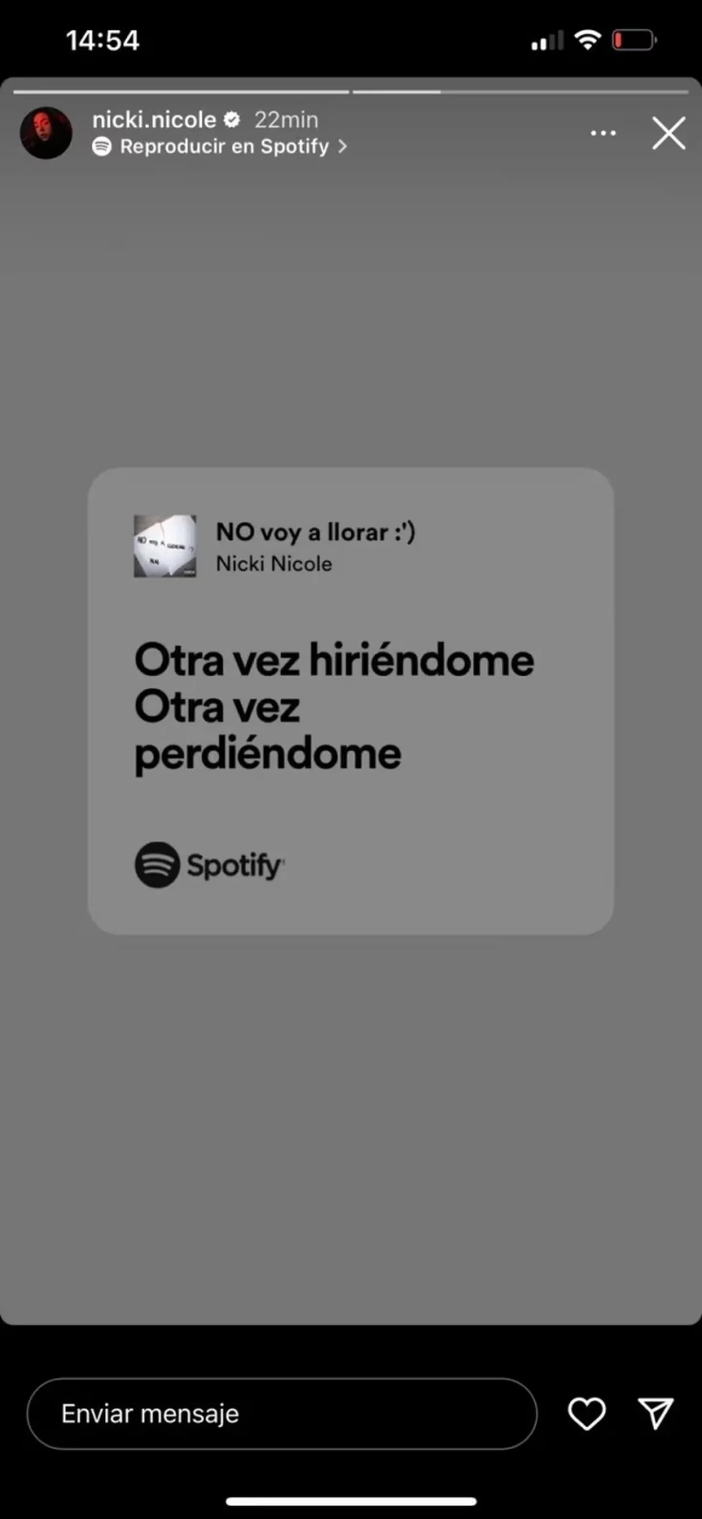 Pero lo llamativo fue el fragmento que decidió subir, con frases como "Otra vez hiriéndome. Otra vez perdiéndome". Esto hizo que tanto sus fans como todos queden sorprendidos por la posible indirecta que le habría lanzado a su ex.