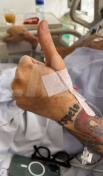 En la imagen se puede ver la mano de Jorge con el pulgar para arriba. "Por el momento tiene el celular y los anteojos. Está armando todo para volver el fin de semana", dijo Mauro Federico.