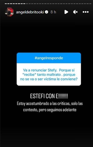 "Va a renunciar Estefi, porque si 'recibe' tanto maltrato, por qué no se va o ser víctima le conviene?", preguntó otro. "Estoy acostumbrado a las críticas, solo las contesto, pero seguimos adelante", afirmó Ángel.