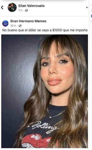 En esa publicación de Facebook, reza la frase positiva y halagadora de la renovación de la cabellera que ejecutó la morocha, de la mano del estilista Kennys Palacios y que L-Gante subió a su cuenta: “No bueno. Que el dólar se vaya a $1000, que me importa”.