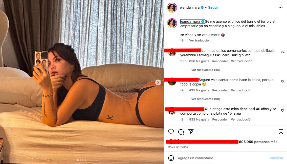 En las últimas horas, Wanda compartió imágenes desde su cama en ropa interior. "Se me acercó el chico del barrio, el turro, y el empresario. Yo no escabio y a ninguno le di mis labios", comenzó expresando. "Se viene y se van a morir", cerró enigmática la mediática.