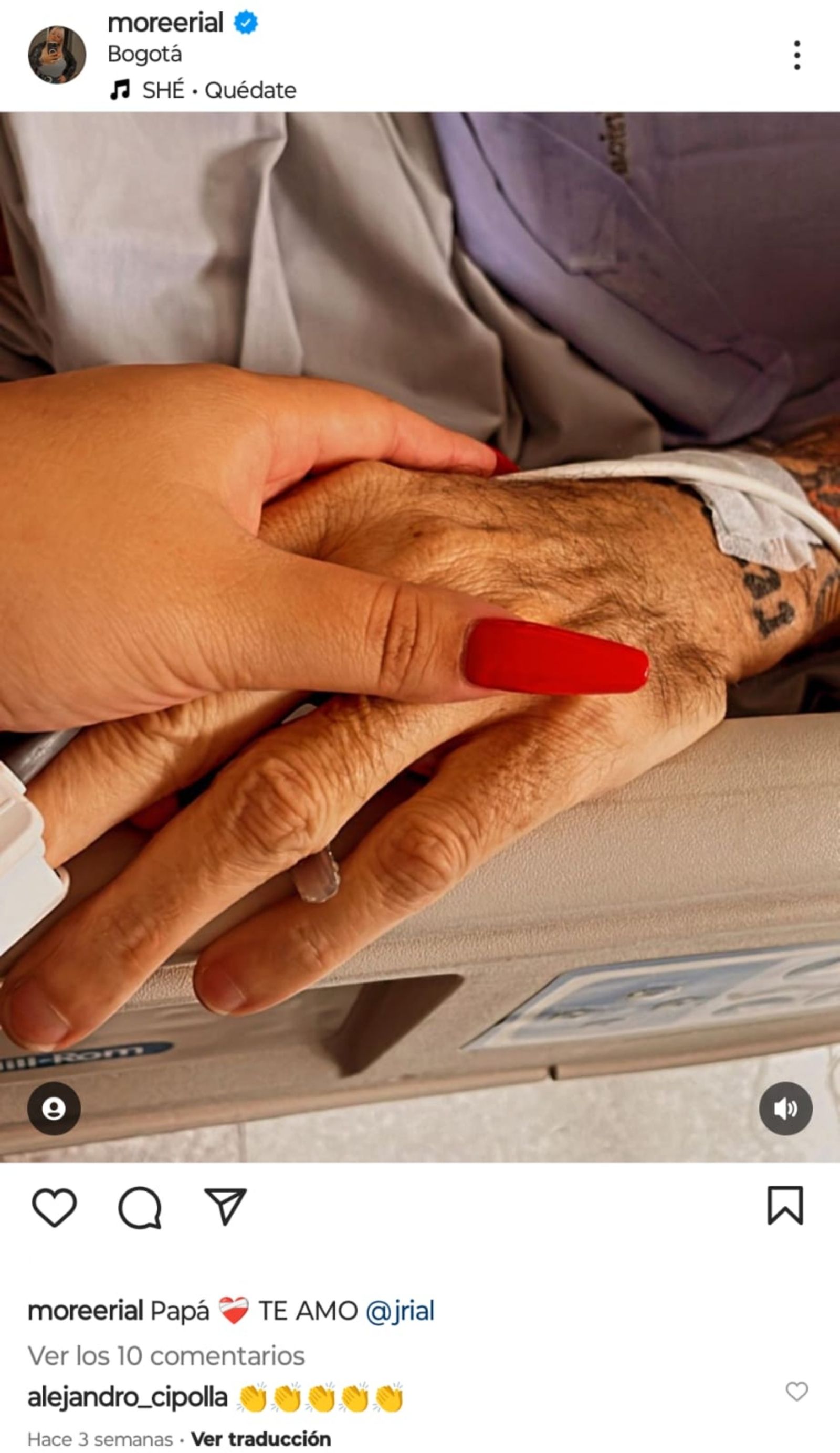 En aquellos días de incertidumbre, More Rial compartió en su perfil de Instagram (@Moreerial) imágenes junto a su padre. Actualmente, el conductor se encuentra mucho mejor de salud tras la descompensación cardíaca que tuvo, pero continúa en observación.
