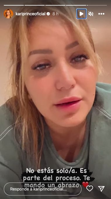 Pero durante la madrugada de este jueves, Karina volvió a compartir un mensaje en su cuenta de Instagram que generó preocupación entre sus seguidores. "No estás solo/a. Es parte del proceso. Te mando un abrazo", escribió la cantante en las últimas horas junto a un video que compartió en sus redes sociales.