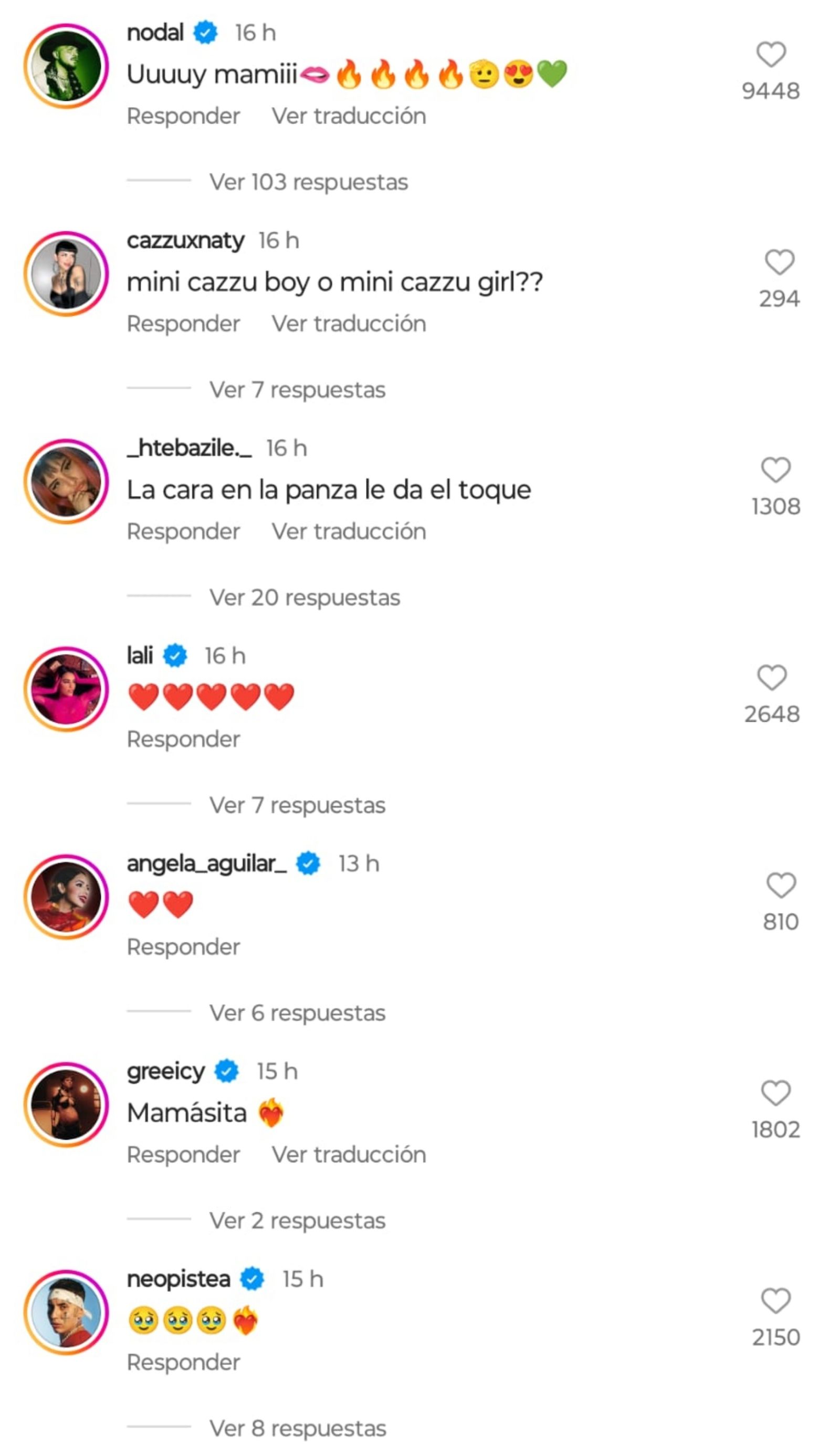 Su pareja también apareció en los comentarios: "Uuuuy mamiii", escribió Christian Nodal junto a algunos sugerentes emojis.