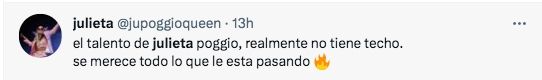 Julieta Poggio se transformó en una de las figuras más queridas tras la final de Gran Hermano 2022. La ex participante del reality, volvió a ser noticia en las redes sociales luego de que este sábado debutara como bailarina durante un espectáculo de Fuerza Bruta, compañía teatral que se caracteriza por la danza y acrobacia.