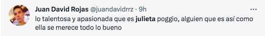 Como era de esperarse, Julieta no estuvo sola. Sus ex compañeros de Gran Hermano estuvieron alentándola desde la platea. "Te amo", expresó Daniela Celis junto a un video de Julieta en plena actuación.