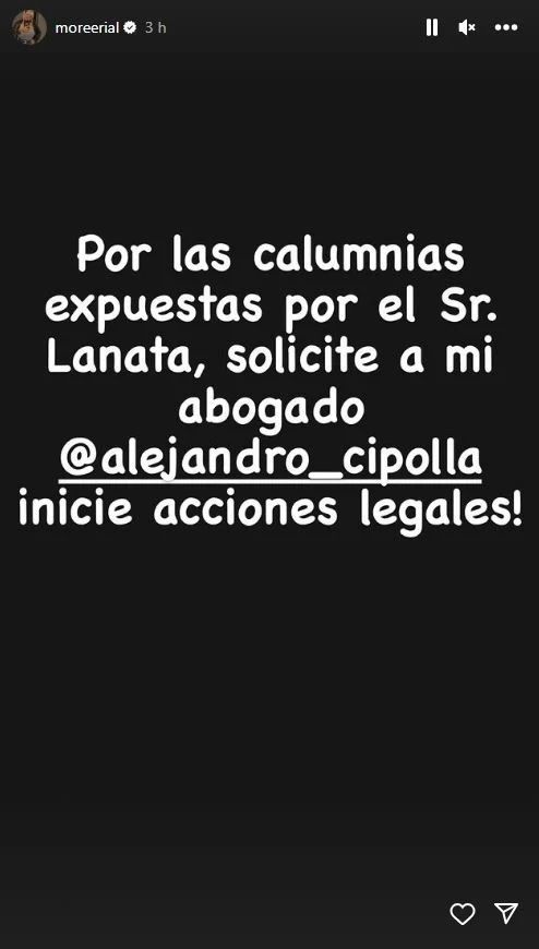 "Por las calumnias expuestas por el Sr. Lanata, solicité a mi abogado Alejandro Cipolla iniciar acciones legales", se puede leer en el posteo de Morena Rial, cargando fuerte contra el periodista y demostrando que no perdonará a nadie que especule sobre el caso.