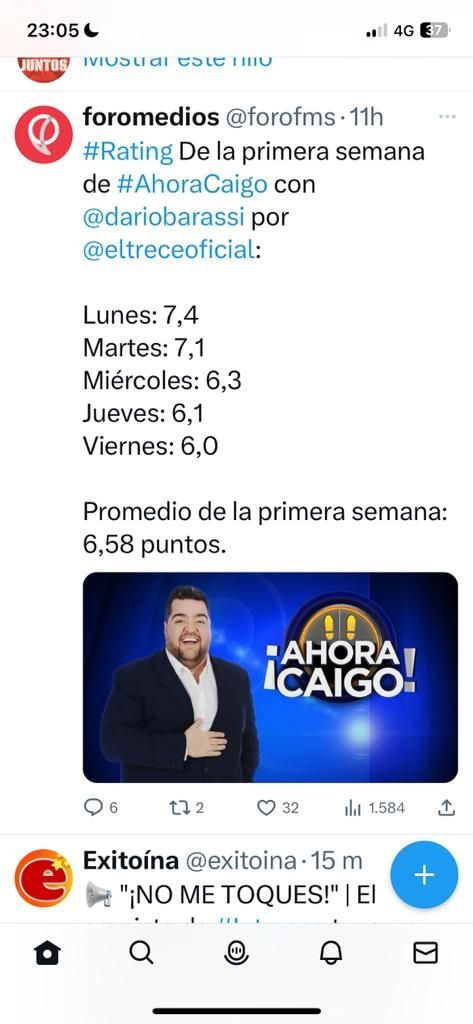 El envío comenzó con una medición interesante de 7.4 en ese 5 de junio. ¿Qué pasó el resto de la semana?El martes mermó 3 décimas y consiguió 7.1 puntos. El miércoles abrazó una media de 6.3 puntos. En tanto que el jueves bajó a 6.1 y el viernes clausuró con 6.0.