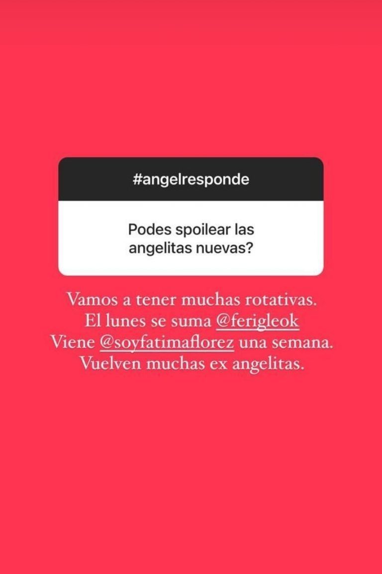 Sin embargo, Ángel de Brito aclaró que ellas dos estarán por una semana nada más y que irán llegando otros reemplazos. Además aclaró que van a desfilar varias angelitas durante los próximos días. Y cuando le consultaron si ya sabía los nombres dijo: “Por supuesto, fue todo consensuado. Pero la idea es que las vean directo en el aire”.