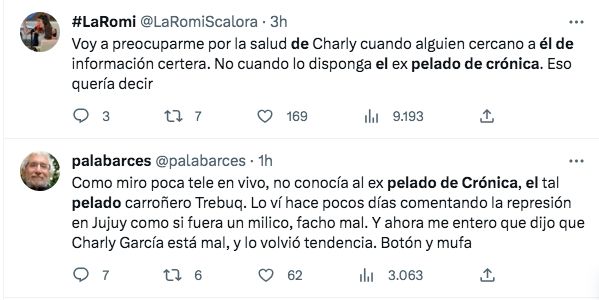Rápidamente, el nombre de Charly García se convirtió en tendencia en Twitter y miles de mensajes apuntaron contra Trebucq y su fake news.