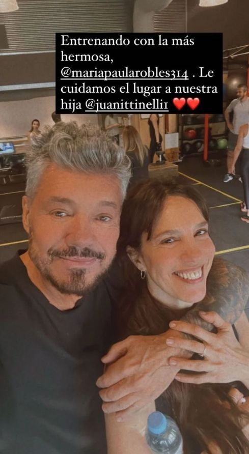 Mientras a Tinelli se lo relaciona con distintas mujeres pero nada se confirma, hace unos días Marcelo Hugo compartió una tierna postal junto a Paula Robles en sus historias y escribió un fuerte mensaje: "Entrenando con la más hermosa", arrobando a su expareja.