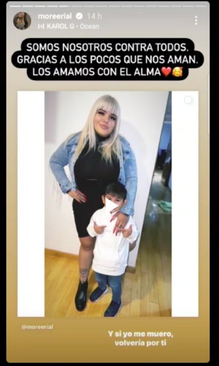 Todo empezó por una storie que colgó en su perfil de Instagram, que refiere a una foto con su hijo Francesco y en la que escribió: “Los que me conocen saben lo que soy como madre, lo que lucho día a día para que nada te falte, cueste lo que cueste, lo que mi hijo me ama, y lo feliz que es”.